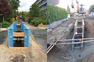 Bei der Herstellung von Leitungsgräben ist DIN 4124 die sicherheitstechnisch wichtigste Richtlinie – sie gilt für geböschte und für verbaute Baugruben und Gräben, die von Hand oder maschinell ausgehoben werden. Abweichende Vorgehensweisen oder Versäumnisse können unter Umständen ein erhebliches Gefahrenpotenzial bergen: Nicht fachgerecht gesicherte Baugruben können einstürzen und in der Baugrube Beschäftigte erheblich gefährden. Weiterhin passieren kann es, dass Personen bei Arbeiten nahe am Baugrubenrand mit Gestein und Erdreich abrutschen und in die Baugrube stürzen. Hinzu kommen statische Aspekte: Ein nicht fachgerecht eingestellter Verbau hat Einfluss auf das Gleichgewicht des umliegenden Erdreiches. Setzungen können die Folge sein, welche die angrenzende Bebauung erheblich schädigen. Dementsprechend muss die Verkleidung von freigelegen Erdwänden von der Geländeoberfläche bis zur Baugruben- bzw. Grabensohle reichen und auf ihrer ganzen Fläche kraftschlüssig am Boden anliegen (Abb. 1 und Abb. 2). Auch eine unsachgemäße Sicherung im Bereich der Stirnwand einer Baugrube kann gefährlich werden. DIN 4124 definiert, unter welchen Randbedingungen auf den Stirnwandverbau des Rohrgrabens verzichtet werden kann. In allen anderen Fällen, auch in Bauzuständen vor Erreichen der geplanten Grabensohle, sind die Stirnwände wie die Längswände durch Böschung oder Verbau zu sichern, sofern diese Bereiche betreten werden.