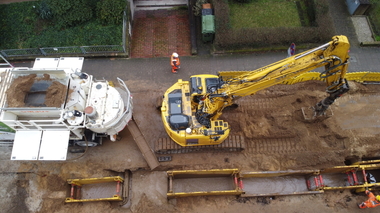 Das Fernwärmenetz der Communauté Urbaine Le Havre soll bis 2025 von 12 auf 60 Kilometer erweitert werden. Mit dieser Maßnahme möchte man deutlich mehr Kunden den Zugang zu sauberer und günstiger Energie ermöglichen. Für die Verlegung der neuen Fernwärmeleitung musste im Verlauf des Projektes unter anderem eine Bahnlinie unterquert werden. Die hierfür nötige 10,00 Meter x 3,00 Meter große Startgrube und die 4,00 Meter x 3,00 Meter große Zielgrube für die grabenlose Ausführung in rund 5,00 Meter Tiefe erstellte das ausführende Unternehmen mit technologischer Unterstützung und einem leistungsstarken Equipment von Terra Infrastructure.