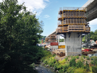 Ersatzneubau Talbrücke Sechshelden: Abriss und Neubau bei laufendem Verkehr, mit beengten Platzverhältnissen in Orts- und Hanglage, erforderten eine stimmige und exakte Schalungsplanung