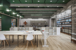 Hauptziel der Umnutzung war es, möglichst viel der Bausubstanz zu erhalten. „Für uns war klar, dass dieses Bauwerk einen großen historischen Wert besitzt, der unbedingt bewahrt werden muss. Deshalb haben wir das Denkmalamt zur Bewertung hinzugezogen“, erinnert sich Dahinten. Schließlich war es der gute Zustand von Konstruktion, Möbeln und Oberflächen – nach fast 60 Jahren Nutzung lediglich mit gewöhnlichen Gebrauchsspuren –, der im Jahr 2021 zur Würdigung des Gebäudes als Denkmal führte. Mit dieser Einstufung gingen zwar entsprechend aufwendigere Planungsauflagen einher, welche das erfahrene interdisziplinäre Architekten- und Ingenieurteam jedoch vorbildlich umsetzte. Den größten konstruktiven Eingriff stellte der Einbau der Oberlichter im großen Saal dar. Heute sorgen sie nicht nur für eine deutlich bessere Belichtung der Arbeitsräume, sondern unterstützen auch das ursprüngliche Konzept der Lichtführung und den neuen Raumeindruck.