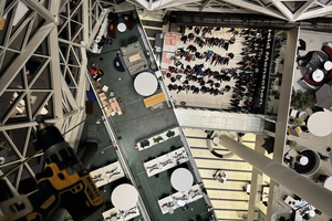Am 25. und 26. November 2025 trafen sich rund 200 Fachleute und Interessierte aus Planung, Bau und Gebäudebetrieb auf dem 9. Deutschen Fachkongress für Absturzsicherheit – diesmal in Berlin. Neben einem umfang- und abwechslungsreichen Vortragsprogramm stand auch eine Exkursion zum Axel-Springer-Campus auf dem Programm. Dort erwartete die Teilnehmenden eine Live-Demonstration zum Thema „Höhenarbeit an der Fassade“ durch das Ingenieurbüro Hochsicher und die Mittelmann Sicherheitstechnik GmbH & Co. KG. Dabei entstand das Foto aus einer Höhe von gut 45 Metern mit Blick auf die Exkursionsgruppe. Einen ausführlichen Bericht über den diesjährigen Fachkongress für Absturzsicherheit finden Sie auf den Seiten 10-11.