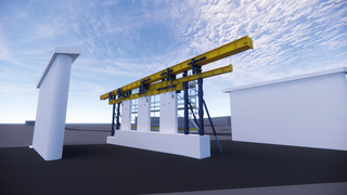 Eine besondere Herausforderung bei diesem Bauvorhaben stellte die Einhaltung des Lichtraumprofils dar, das für den ungehinderten Zugsverkehr freigehalten werden musste. Denn außerhalb der kurzzeitigen nächtlichen Sperren wurden die Gleise auch während der Bauphase befahren. Statt eine kostspielige, massive Stahlbau-Sonderanfertigung für die Unterstellung der Gleisbereiche zu beauftragen, konzipierte Doka eine leistungsstarke Unterstellung aus dem mietbaren Baukasten-System Doka UniKit. Ein bestehender Pfeiler der alten Brücke wurde dafür abgeschnitten und als Hilfspfeiler genutzt. Da das Aufrüsten den Mittelpfeilers aufgrund der Gleissperren sehr zeitkritisch war, bereitete sich die Baustellenmannschaft mit einer von Doka aufbereiteten Animation der „digitalen Vormontage“ auf diese Arbeiten vor.