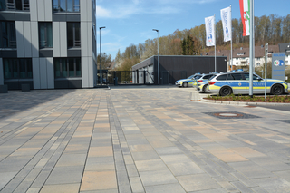 Die Hauptzufahrt zur neuen Polizeiwache in Gummersbach wurde 2018 mit einem Pflastersystem befestigt, das sowohl optisch als auch technisch überzeugte