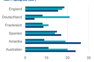 Der „Internationale Bauzeitenvergleich bei Infrastrukturprojekten“ bestätigt diese Problematik. Deutschland schneidet hier schlechter ab als etwa Australien oder die USA – ein Indiz dafür, dass neben den Kosten auch die Termintreue leidet. Die späte Einbindung von Ausführungsunternehmen, die hohe Zahl an Schnittstellen und der hohe Koordinationsaufwand bei Fachlosvergabe wirken sich hier direkt negativ aus (siehe Abbildung 4).