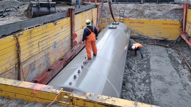 Bei der Baumaßnahme entstand eine große Menge an Bodenaushub. Ein Teil davon wurde gesiebt, mit Wasser und einem Teil Beton vermengt und in Form von Flüssigboden zum Verfüllen der Baugruben genutzt. Auch dabei hat sich der teilweise 40 Meter lange Verbau laut Steve Ramminger erfolgreich bewährt: „Damit konnte der Flüssigboden auf langer Strecke und in einem Guss gleichmäßig verfüllt werden.“