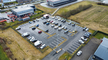 Insellösung: Die Stellflächen für die Lkw wurden in Beton realisiert – die Flachbordsteine für die Verkehrsinseln wurden einfach aufgeklebt.
