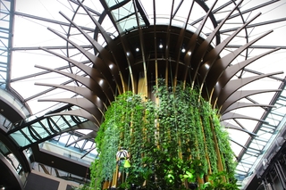 Die Höhenkletterer demonstrierten das Vorgehen bei Arbeiten in 45 Meter Höhe im Atrium des Axel-Springer-Campus