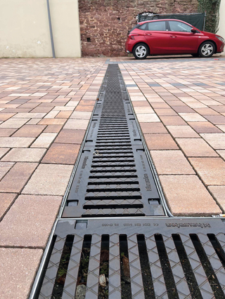 Niederschlagswasser wird von den versiegelten Flächen in der Drainfix Clean Rinne gesammelt, abgeleitet und währenddessen – beim Passieren des Filtersubstrats in der Rinne – zuverlässig von Schadstoffen befreit