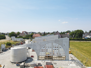 Schalungslösungen für Plusenergiegebäude im ElsassDas neue städtische Technikzentrum der französischen Gemeinde Herrlisheim wird mit einer Solaranlage auf dem Pultdach realisiert, um nicht nur den Eigenbedarf an Energie zu decken, sondern um auch andere öffentliche Einrichtungen zu versorgen. Für die Schalung der unterschiedlich hohen Wände nutzte das ausführende Bauunternehmen Léon die Logo.3-Wandschalung von Paschal. Für die Zisterne mit 60 Kubikmeter Fassungsvermögen kam die Trapezträgerrundschalung (TTR) von Paschal zum Einsatz.