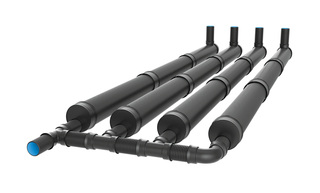zusätzliches Stauvolumen. Mit Rohrsträngen, die in parallelen Reihen verlegt und miteinander verbunden werden können, lassen sich