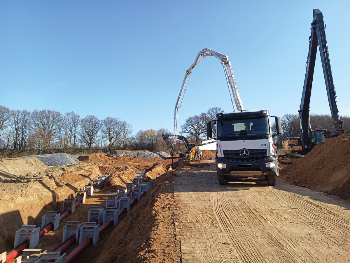 Die etwa 300 Kilometer lange A-Nord-Trasse von Emden nach Osterath wird als Erdkabel in Gleichstromtechnik gebaut. Bei der Verfüllung der Kabelgräben in der Leitungszone ist durch den Bauherrn der Einsatz von Flüssigboden/ZFSV vorgegeben, denn dieser bietet für diese Anwendung gleich mehrere Vorteile.
