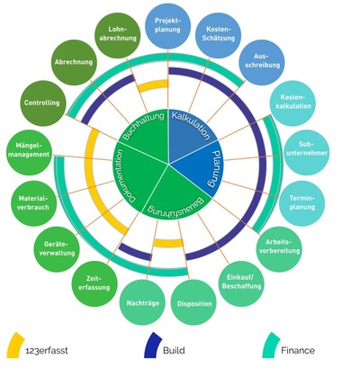 Zeiterfassung und Baustellen-Dokumentation per AppMit 123erfasst lassen sich Informationen zu Mitarbeiterzeiten, Material, Baufortschritt und Geräte problemlos per Smartphone oder Tablet erfassen, um sie in anderen Systemen weiterverarbeiten zu können.