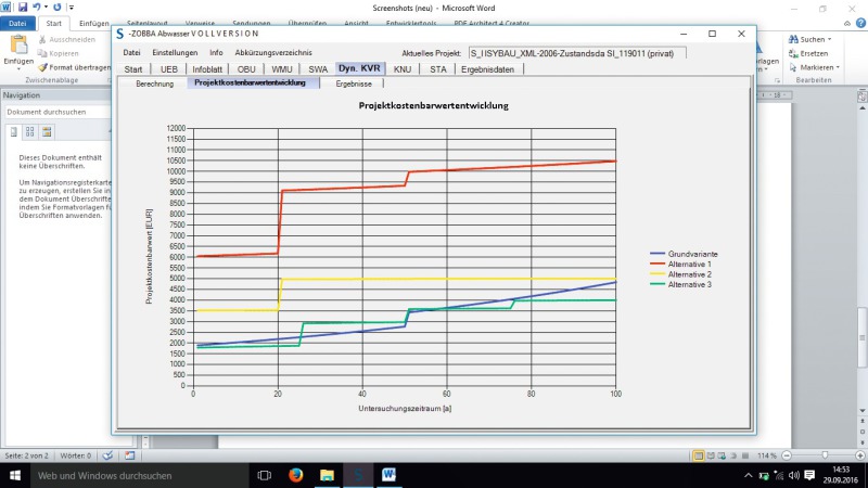 – Vergleichende Untersuchung von bis zu vier Sanierungsalternativen, jeweils als pauschale Investition oder als Investitionsfolge