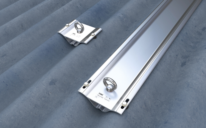 Mit dem ABS-Lock Wave stellt ABS Safety seinen ersten Anschlagpunkt für Wellplattendächer vor. Der ABS-Lock Wave 100 basiert auf einem Edelstahlanschlagpunkt mit einer wellenförmigen Aluminiumgrundplatte, die sich perfekt in die Profile von Wellplatten mit einem Wellenabstand von 177 mm einfügen. Die Befestigung erfolgt mit zwei Schrauben direkt im Dachsparren, der eine Mindeststärke 100 x 120 mm vorweisen muss. Schon ab einer Sparrenbreite von 60 mm kann der ABS-Lock Wave 60 verbaut werden. Er hat eine 25 cm lange Grundplatte und wird mit vier Schrauben an zwei Sparren befestigt. Die ausgelieferte Standardlänge ist dabei auf einen Sparrenabstand (Balkenmitte bis Balkenmitte) von 115 cm ausgelegt. Der ABS-Lock Wave 60 bietet besondere Flexibilität, denn mit zwei zusätzlich in die Aluminiumprofile gebohrten Löchern kann das System stufenlos auch auf geringere Balkenabstände angepasst werden. Die beiden Langlöcher am unteren Ende des Anschlagpunktes ermöglichen zudem eine optimale Ausrichtung der Anschlageinrichtung.