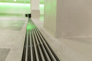 Im Bereich der Bewegungsfugen griff man zum einen auf das speziell für dieses Anwendungsgebiet entwickelte ProJoint zurück. Die durch ein Kantenschutzprofil verstärkte Flüssigabdichtung aus PMMA passt sich flexibel dem Fugenaufbau an. Da sie vollflächig haftet, wird einem Unterlaufen erfolgreich vorgebeugt. Zum anderen wurden einige der Fugen mit Profilen der Firma Buchberger umgesetzt. Diese ist seit vielen Jahren Kooperationspartner von Triflex, sodass der Bauherr auf die Kompatibilität der Materialien und Systeme vertrauen kann.
