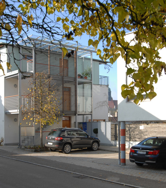 Die Architektur zeichnet sich durch Leichtigkeit aus, die Anordnung schafft Freiräume. Der auf zwei Kuben basierende Baukörper wirkt zurückhaltend sachlich. Die klare Fenstergeometrie wird von wenigen Rundfenstern sparsam akzentuiert. Blickfang des Gebäudes ist das zurückgesetzte Dachgeschoss, das Wohnungen mit Penthouse-Flair birgt. Ein auskragendes Pultdach schützt vor Sonne und Regen. Eine weitere Besonderheit ist das außen liegende Treppenhaus, das sowohl die Vorteile natürlicher Belüftung und Belichtung nutzt als auch Treffpunkte für die Bewohner schafft.