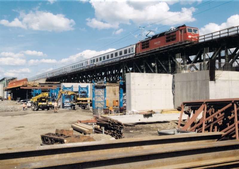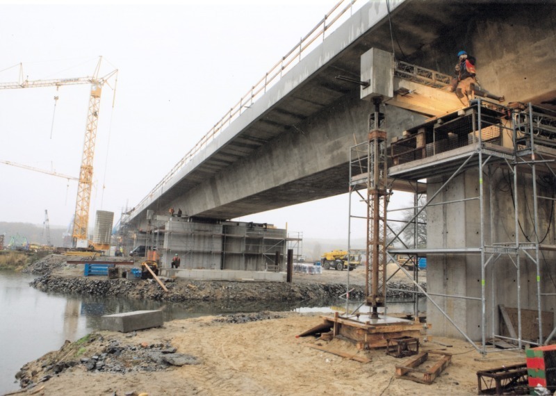 Traggerüstpremiere für neue Schwerlaststütze S 150Sie ist fertig: die neue Eisenbahnbrücke zwischen Deutschland und Polen, die in Frankfurt über die Oder führt. Mitte Dezember ist die 443 m lange neue Bogenbrücke nach nur zehn Monaten Bauzeit in Betrieb gegangen. Doch erst kurz zuvor verschwand exakt an gleicher Stelle die alte, marode Brückenverbindung, die den Eisenbahnverkehr noch bis Mitte Oktober aufrecht erhalten hatte. Wie das funktionieren kann? Die beiden Stahlbeton-Überbauten der Vorlandbrücken und auch der Stahlbogen wurden vorgefertigt und erst kurz vor Ende der Baumaßnahme in Position gebracht. Wesentlich am Gelingen beteiligt...