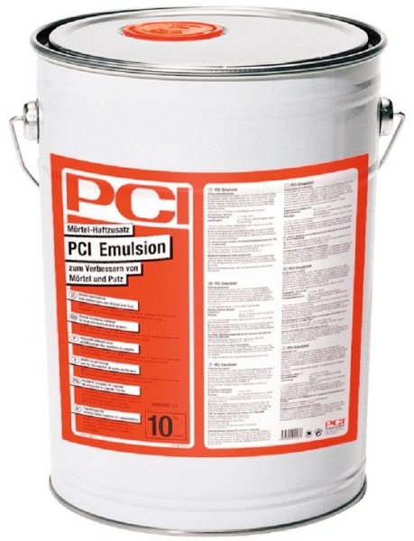 Die PCI-Emulsion mauserte sich schnell zu einem unentbehrlichen Schlüsselprodukt, vielseitig anwendbaren Hilfsmittel bei der Bauinstandsetzung. Zwar sind für einige ihrer typischen Einsatzbereiche im Lauf der Jahre Spezialprodukte entwickelt worden, die als vorgefertigte Mörtel auf die Baustelle kommen und dort in der Regel nur noch mit Wasser angemischt zu werden brauchen wie zum Beispiel bestimmte Reparaturmörtel, Betonspachtel oder Mörtelhaftbrücken. Wer allerdings seinen Mörtel selbst aus Zement, Sand und Wasser anmischt, greift auch heute noch zur PCI-Emulsion, um die Eigenschaften von Haftschlämmen, Mörteln und Putzen zu verbessern. Insbesondere verbessert der Zusatz der verseifungsbeständigen PCI-Emulsion die Haftung entsprechender Schlämmen, wirkt plastifizierend in Mörteln und Putzen, erhöht die Verschleißfestigkeit hinsichtlich Abrieb und Widerstandsfähigkeit gegen Wasser, Öl und Salzlösungen, steigert die Biegezugfestigkeit und sorgt für rissefreie Aushärtung.