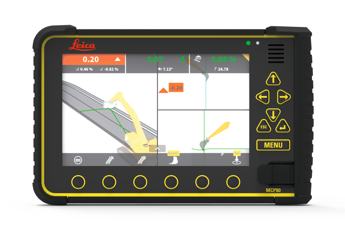Die All-in-One-Maschinensteuerungslösung umfasst eine einheitliche Hardwareplattform und eine gemeinsame Softwareschnittstelle, die sich über das gesamte Maschinensteuerungsportfolio von Leica Geosystems erstreckt. Die mobile Steuerungseinheit Leica MCP80 kann deshalb für alle schweren Baumaschinen im Wechsel eingesetzt werden.