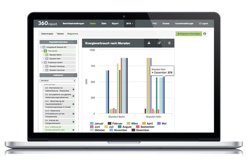 Zur Erleichterung der Datenerhebung und der gesetzeskonformen Darstellung der energetischen Bewertung bietet das Softwarehaus 360report eine onlinebasierte Softwarelösung an, die in Kooperation mit Auditoren und Gutachtern entwickelt wurde. Der Berliner Spezialist für Nachhaltigkeit aus dem Portfolio des Company Builders etventure, ist bereits seit dreieinhalb Jahren mit einer softwarebasierten Lösung für Berichterstattung am Markt. Er verfügt daher über die Erfahrung und das Know-how, eine praxistaugliche, digitale Lösung anbieten zu können.