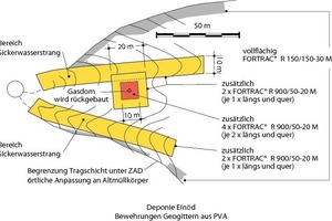 Auch im Deponiebau kamen die Lösungen zur Anwendung, erstmalig bei einer Hangdeponie (Deponie Böschistobel, Österreich) um die lokale und globale Standsicherheit zu gewährleisten, indem Bewehrungen mit sehr hohen Festigkeiten von 550 kN/m und 1200 kN/m bei geringen Dehnungen eingesetzt wurden.