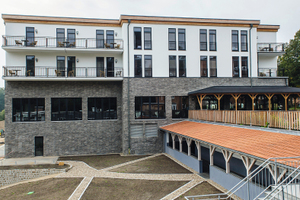 Nach rund eineinhalb Jahren Bauzeit bietet die „Waldresidenz“ auf 6.300 m² neben 47 individuellen Hotelzimmern und -suiten auch drei Tagungs- und Bankettsäle sowie eine eigene Tiefgarage. Den kompletten Rohbau realisierte die Schweriner Hermann Schütt Hoch- und Tiefbau Schwerin GmbH & Co. KG, Teile des Mauerwerkes wurden mit den bewährten Porit Porenbeton Plansteinen ausgeführt. „Wir wollten außen einen glatten, mineralischen Putz verwenden, der sich deutlich von den sonst bei WDVS üblichen Kunstharzputzen abhebt“, erläutert Dipl.-Ing. Ronald Wutzow. „In Verbindung mit der guten Wärmedämmung von Porenbeton konnten wir durchweg einschalig bauen, wodurch das gesamte Handling auf der Baustelle nochmals optimiert wurde.“