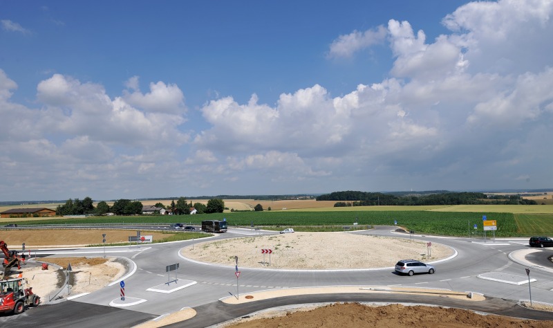 Der beschriebene, große Kreisverkehr ragt dabei etwas aus den anderen Baumaßnahmen heraus. Kreisel aus Beton sind wie erwähnt noch keine Selbstverständlichkeit. Ein Umstand, der sich nach und nach ändern dürfte. Denn zum einen zeigen die positiven Beispiele und Erfahrungen aus Österreich und der Schweiz, dass Langlebigkeit und wenig bis kein Bauunterhalt die höheren Baukosten aufwiegen. Und zum anderen müssen unsere Straßen für eine weitere Zunahme an Fahrzeugen und vor allem an Schwerlastverkehr fit gemacht werden. Dies kann unter anderem mit dem Einsatz von Beton auf Fahrbahnflächen, in Kreuzungsbereichen oder Kreisverkehren geschehen. Immer dann also, wenn zu einer hohen Frequenz an Fahrzeugen besondere Belastungen wie Temperaturschwankungen, häufiges Anfahren und Abbremsen oder Lenkbewegungen und damit Querkräfte kommen.
