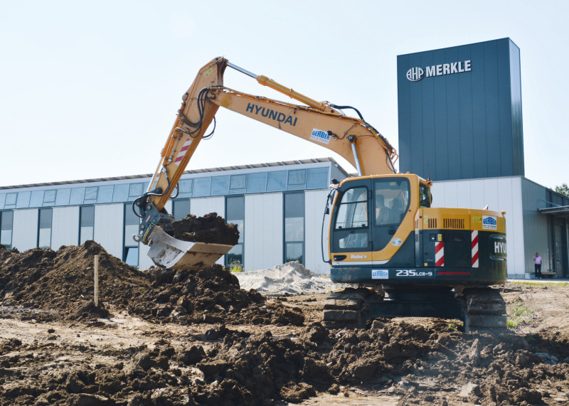 Das Bauunternehmen Gerber GmbH mit Sitz in Denzlingen, 20 km nördlich von Freiburg, wurde 1953 von Horst Gerber gegründet. Über 60 Mitarbeiter sind in den Sparten Hoch-, Tief- und Straßenbau aktiv. Seit vielen Jahren beschafft man Tiefbaumaschinen beim Vertragshändler Eberle und Hald. Niederlassungsleiter Stefan Egler konnte nun erstmals einen Hyundai-Kurzheckbagger 235LCR-9 mit Oilquick-Schnellwechsler an Geschäftsführer Stefan Gerber und sein Team übergeben.