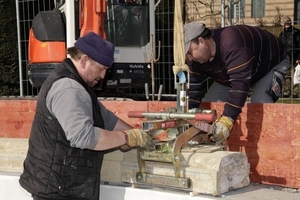 Das Schöne, aber auch eine besondere Herausforderung bei der Sanierung des Seerosenteichs der Wilhelma stellten die denkmalgeschützten Kronensteine dar. Sie zieren das Becken inzwischen wieder in voller Pracht. Doch waren für dieses Ergebnis die Sorgfalt und das Know-how der Firma Wamser GmbH, Wegebau und Außenanlagen, unentbehrlich: Die Bauprofis sanierten die durch Witterung geschädigten Steine und setzten sie auf den Beckenkopf. „Glücklicherweise konnten wir einen Großteil der Natursteinblöcke wieder in einen attraktiven Zustand versetzen“, erklärt Jan Wamser. „Schließlich sollte der Teich sein Erscheinungsbild beibehalten und lediglich die schöne Optik wiederhergestellt werden.“ So konnten 62 Steine saniert werden, vier der Blöcke waren sogar so gut erhalten, dass sie unbeschadet wieder eingesetzt wurden. „Einige Kronensteine konnten allerdings nicht mehr verwendet werden, so dass wir 70 Blöcke neu gießen lassen mussten“, erklärt Helmut Gekeler. Bevor die Fachleute die Kronensteine an ihren alten Platz legen konnten, mussten sie den Beckenkopf reprofilieren. „Hierbei kam das Epoxi-Bindemittel PCI Bauharz abgemischt mit einem kornabgestimmten Quarzsand zum Einsatz. Dieser Arbeitsschritt war unerlässlich, verhindert er doch, dass Wasser aus dem Becken gezogen wird“, erläutert Erhard Kuttler. Wesentlich für ein dauerhaft gepflegtes Ergebnis: die Eigenschaften des Bindemittels. So ist PCI Bauharz wasserfest und beständig gegenüber Witterung und Frost. Im Anschluss konnten die Steine gelegt werden – eine knifflige Aufgabe wie Helmut Gekeler erklärt: „Besonders anspruchsvoll beim Setzen war die Auflage des Denkmalamtes. Denn die sanierten und unbeschadeten Kronensteine mussten genau an die Stelle eingesetzt werden, an der sie auch zuvor gelegen haben. Gar keine leichte Aufgabe für Vermessung und Verlegung, die die Profis aber wunderbar gelöst haben.“ Die sanierten und auch neue Natursteinblöcke verlegten die Verarbeiter mit dem witterungsbeständigen Reaktionsharz-Bindemittel PCI Durapox NT. „Da der Mörtel rissefrei aushärtet und schwundfrei abbindet, ist eine hohe Flankenhaftung garantiert“, sagt Erhard Kuttler. Zunächst trugen die Profis eine dünne Kontaktschicht auf den Beckenkopf sowie die Unterseite der Kronensteine auf. Diese erleichterte das nachfolgende Aufkämmen. „Da die Kronensteine sehr schwer sind – einer wiegt etwa 100 Kilogramm – verkeilten wir die Blöcke, damit sie nicht verrutschen konnten“, erläutert Jan Wamser.