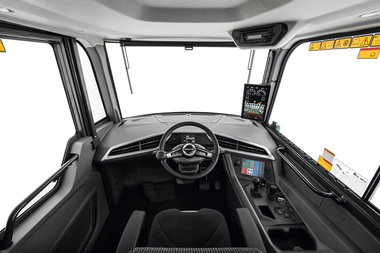 Die Kabine der nächsten Generation ist viermal leiser als das vorherige Kabinendesign und senkt den Geräuschpegel am Ohr des Fahrers auf 69 dB(A), was den Fahrerkomfort deutlich verbessert. Beim Einsteigen in die Kabine werden beim Öffnen der Tür das Touchscreen-Display und sämtliche Steuergeräte aktiviert. Die Überrollschutzvorrichtung (ROPS) der Kabine kommt ohne Säulen im hinteren Bereich aus, um dem Fahrer bessere Sicht nach hinten und mehr Raumgefühl zu ermöglichen. Direkt an der Kabine montierte, elektrisch verstell- und beheizbare Spiegel bieten dem Fahrer eine hervorragende Sicht, reduzieren die Vibrationen, erleichtern das Einklappen und die regelmäßige Reinigung.