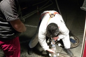 Die Installation der Liner erfolgte in allen Fällen in der bewährten Art und Weise: Der Liner wird dabei über einen Kontrollschacht in die vorbereitete Leitung eingezogen und dann pneumatisch so aufkalibriert, dass er formschlüssig an der Rohrwand anliegt. Anschließend wird er für wenige Minuten geöffnet, so dass eine UV-Lampenkette in den Liner eingesetzt werden kann. Diese durchfährt den Schlauch mit exakt vorgegebener Geschwindigkeit; jeder Punkt der Lineroberfläche wird genau mit der UV-Strahlung beaufschlagt, die es für eine vollständige Durchhärtung des Schlauchliners braucht. Diese Härtungstechnik ist extrem schnell: In Minden durchfuhr die Lampenkette mit 12 x 400 Watt Lampenleistung den Liner mit 57 bis 62 cm pro Minute. So war auch der 186- m-Liner in rund drei Stunden einsatzfertig ausgehärtet und konnte nach Auffräsen einiger Anschlüsse noch am Einbautag wieder geöffnet werden. Auch dies spricht für lichthärtende Glasfasersysteme: Sie können praktisch sofort wieder in Betrieb genommen werden, da keine Abkühlungs-bedingten Längenschrumpfungen „abgewartet“ werden müssen, bevor man an die Nacharbeiten gehen kann.
