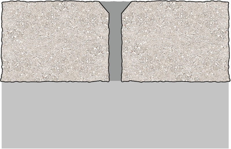 Wo liegt der Vorteil dieser Fuge? Zum einen stellt sie eine Sollbruchstelle dar, in der sich Spannungen abbauen können und zum anderen bleibt der Pflasterstein trotz Bewegungsfuge in seinem unteren Teil an allen Seiten fest in einer Mörtelmatrix eingebunden. Wird er also oberseitig durch Druck-, Schub- und Zugkräfte belastet, kann er diese gut aufnehmen, ohne dass der Stein in seiner Position verschoben wird. Ein Kippen in die Dehnfuge wird dadurch verhindert. Das Einschneiden und anschließende Verfüllen der Fuge mit einem elastischen Dichtstoff ist eine einfache und überschaubare Ausführungsart.