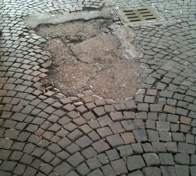 Die Praxis zeigt jedoch häufig, dass die Bedeutung der Fuge immer wieder unterschätzt wird. Der enorme Kosten- und Zeitdruck erlaubt heute kaum noch eine ordentliche Ausführung der Bauleistung bzw. eine ausreichende Bauüberwachung. Untersucht man Schäden an Pflasterflächen genauer, wird deutlich, dass eine mangelhafte Ausbildung der Fugen eine Hauptschadensursache ist. Denn die Erstellung einer ausreichenden Fuge mit Schnur und Richteisen ist für den Verleger mit erheblichem Aufwand verbunden. Stattdessen werden die Steine einfach an die bereits gelegten Steine angeschoben, um eine möglichst hohe Verlegeleistung zu erzielen. Dabei entstehen je nach Abstandhalter oder Verbundnocke an den Steinflanken relativ große Betonkontaktflächen. Funktionsgerechte Fugen werden dabei vorgetäuscht. Die Lastabtragung erfolgt dann über den reinen Betonkontakt. Die Folge können Kantenabplatzungen und Verschiebungen der Steine sein.