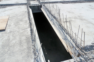 Die Betondeckung der oberen Bewehrungslage in der Platte des Freidecks von cnom = 3,0 cm entsprach nicht den Vorgaben der heute gültigen DIN1045-1, 2008. Die für die relevante Expositionsklasse XD3 (Bewehrungskorrosion ausgelöst durch Chloride) erforderliche Mindestbetondeckung beträgt unter Ansatz eines rissüberbrückenden Oberflächenschutzes cmin = 40 mm. Im Zuge der Sanierung zeigte sich, dass insbesondere im Bereich der Entwässerungsrinnen noch geringere Betondeckungen vorlagen. Hier wurde die obere Bewehrungslage offensichtlich nicht an die Kontur der Rinne angepasst.