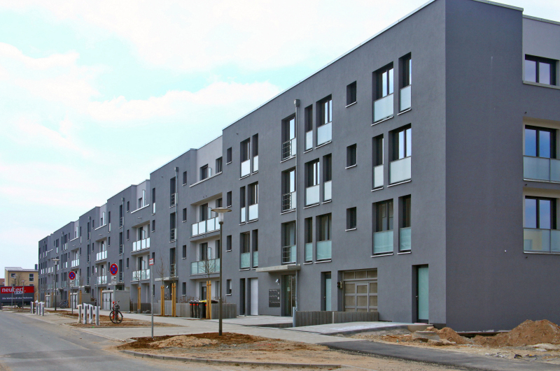 In den neu entstandenen Wohngebieten des Stadtteils (ca. 22 ha) wurden unterschiedlichste Wohnbauprojekte realisiert bzw. befinden sich im Bau. Ein viel beachtetes Projekt in der Thomas-Dehler-Straße, nämlich der Bau von Stadthäusern, steht vor der Fertigstellung. Die straßenbegleitende, voll unterkellerte Anlage versammelt in vier Vollgeschossen großzügige Wohnungen unterschiedlichen Zuschnitts und Größe. Qualität in Konzeption und Detail kennzeichnet das Gebäudeensemble, das sich nach außen zurückhaltend und doch repräsentativ gibt. Ob die klassisch ausgearbeitet Fassade mit einer klaren Gliederung, in die sich raumhohe Fensterelemente einfügen oder die optimal ausgerichteten, großzügigen Dachterrassen der Staffelgeschosse, bei der Planung und Ausführung wurde nichts dem Zufall überlassen.