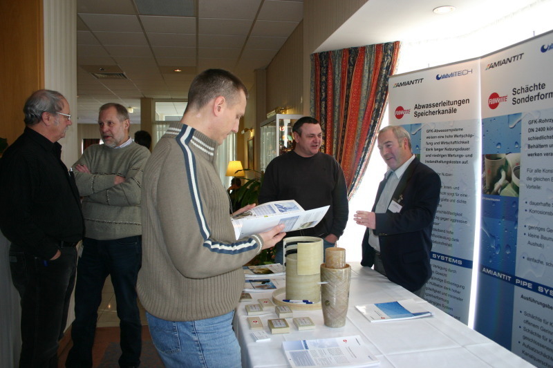 „Die rasante Entwicklung von Großrohren aus GFK“ stand im Mittelpunkt des Vortrags von Dipl.-Ing. Uwe Napierski, Amitech Germany GmbH. Die vielfältigen Einsatzmöglichkeiten und das leichte Handling von GFK-Großprofilen besonders im Tiefbau, aber auch im Kraftwerksbau und anderen industriellen Anwendungsgebieten stießen beim Publikum auf hohes Interesse.