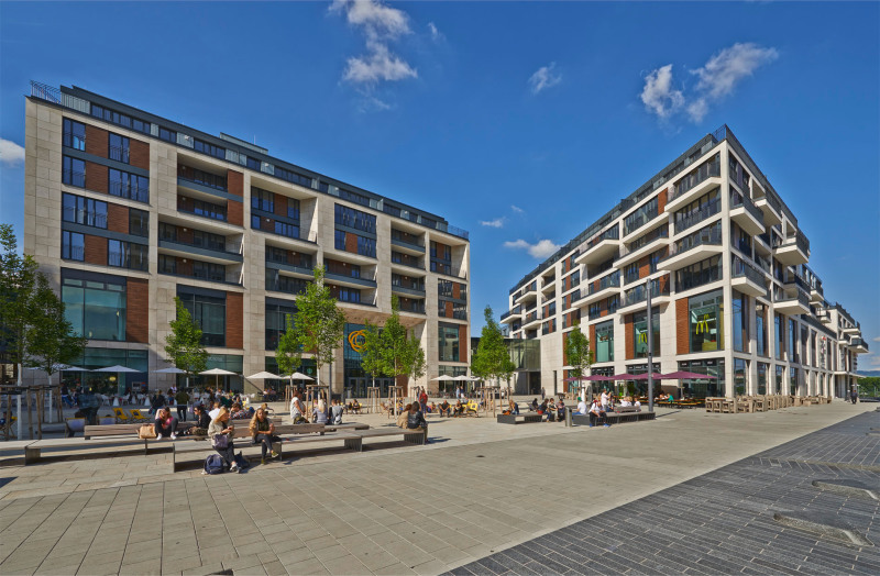 „Da waren zum einen die innerstädtische Lage hier direkt am Hauptbahnhof mit all ihren logistischen Herausforderungen und zum anderen natürlich die komplexe Errichtung des Shoppingcenters sowie des Hotels und der Wohngebäude auf den Etagen darüber. Dass die Gesamtfertigstellung zudem noch acht Monate lang parallel zum bereits in Betrieb genommenen Einkaufscenter erfolgen musste, war noch das Sahnehäubchen auf dem Kuchen“, zählt Mack mit einem Schmunzeln auf. Die Bebauung oberhalb des Shopping-Centers machte den Einsatz einer Stahlbeton-Unterzugsdecke als Lastverteilerplatte nötig. Um die Aufenthaltsqualität insbesondere in den Wohnungen und im Hotel nicht zu beeinträchtigen, musste das Shopping-Center zudem schalltechnisch vom Rest der Gebäude entkoppelt werden. Hierzu errichtete Züblin einen Doppelboden auf punktuell angeordneten Elastomerlagern zwischen den Bauteilen.