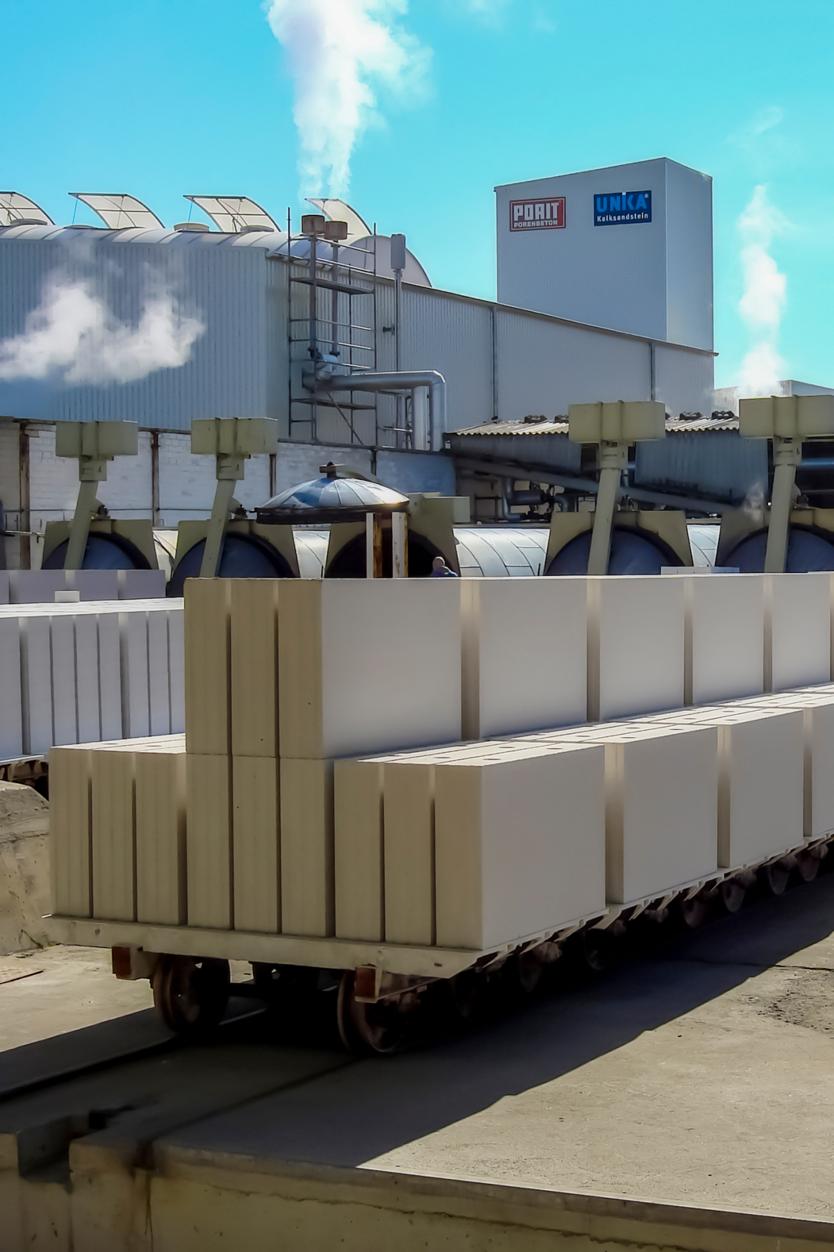 Unika Kalksandsteine bestehen aus den natürlich vorkommenden Rohstoffen Kalk und Sand. Der Sand wird in unmittelbarer Nähe zum Produktionsstandort gewonnen. Kurze Transportwege führen bei der Rohstoffbereitstellung zu einer günstigen Ökobilanz. Die Materialien werden mit Wasser gemischt, zum Rohling gepresst und unter Dampfdruck energieeffizient gehärtet. Als einziges Bindemittel kommt Kalk zum Einsatz. Restmengen, die bei der Produktion entstehen, werden zerkleinert und kehren als Zuschlag direkt in den Produktionsprozess zurück. Damit ist der gesamte Prozess schadstoffarm.