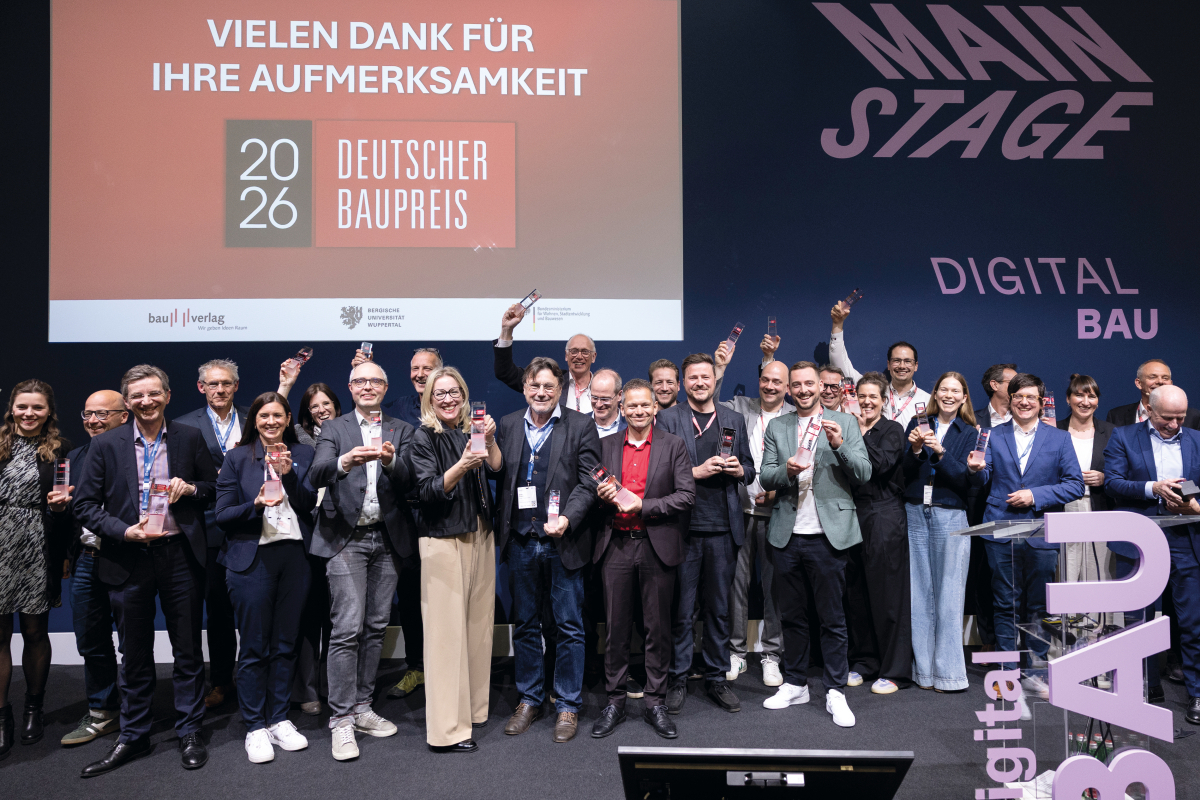 Unter der Schirmherrschaft des Ministeriums für Wohnen, Stadtentwicklung und Bauen hat der Bauverlag im Rahmen der digitalBAU in Köln am 24. März 2026 wieder den Deutschen Baupreis verliehen ...