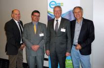(v.l.n.r.) Dr. Markus Lanzerath (Geschäftsführer Bundesfachverband Betonkanalsysteme e.V.), Joachim Strack (Geschäftsführer Bernhard Müller Beton GmbH), Thomas Zawalski (Geschäftsführer solid Unit e.V.), Mario Bodenbender (Mitglied der Geschäftsleitung Finger-Beton Unternehmensgruppe)
