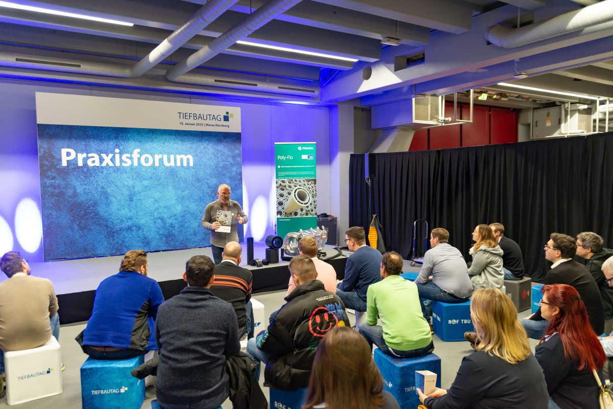 R+F TBU organisierte zum Jahresauftakt wichtigen Treffpunkt der Tiefbau-Branche 16.01.2025Bereits zum achten Mal und lud die R+F TBU zum Tiefbautag auf die NürnbergMesse ein. Viele der rund 3.000 Besucherinnen und Besucher, die aus allen Vertriebsregionen der R+F TBU angereist waren, warteten bereits vor dem offiziellen Start der Fachmesse vor den Toren der Frankenhalle. 120 Aussteller präsentierten Produkte und Dienstleistungen aus allen Bereichen, die die Tiefbau-Branche zu bieten hat: Versorgung, Entsorgung, Umwelttechnik, Regenwassermanagement, Kabelschutz und Digitale Services.