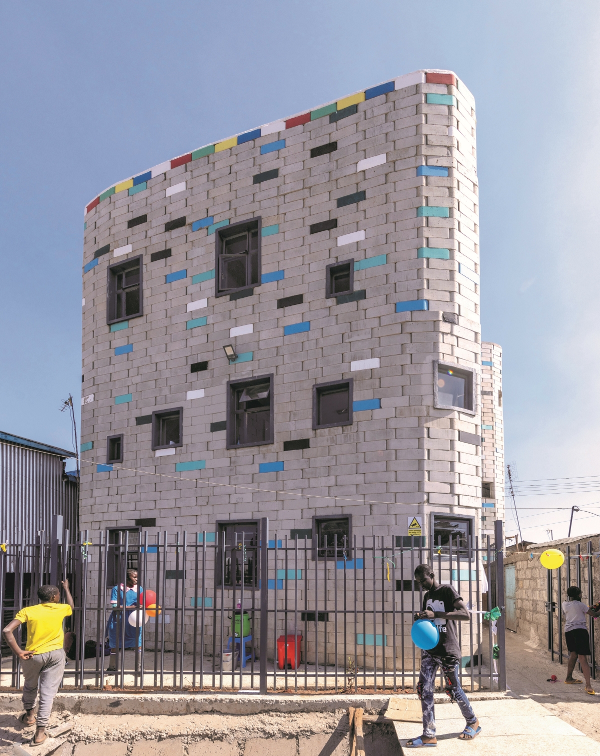 7.000 TwistBlocks bilden die Mauern der Schule in Kibera. Die brandsicheren Steine überzeugen durch ihr einfaches Stecksystem, das neben schneller und einfacher Handhabung eine flexible Gestaltung des Grundrisses auf beengtem Raum ermöglicht. Der Hohlraum im inneren der Steine sorgt zudem für eine gute Isolierung und angenehme Raumtemperaturen im Sommer sowie im Winter. Der Bau von Gebäuden ist dadurch sehr einfach und benötigt weder Mörtel noch ausgebildete Maurer. Mir nur einem Jahr Bauzeit für das Schulgebäude setzt die TwistBlock-Methode neue Maßstäbe für ein besonders schnelles Vorgehen.