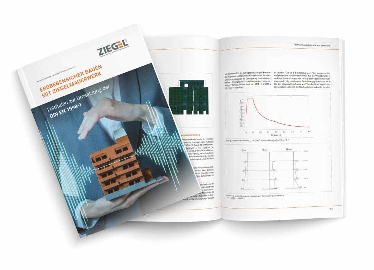Die neue Broschüre „Bemessung von Ziegelmauerwerk nach DIN EN 1996-3/NA“ zeigt, dass sich das vereinfachte Verfahren für einen Großteil der in der Praxis vorkommenden Beanspruchungs-situationen anwenden lässt. Leicht verständliche Berechnungsbeispiele, übersichtliche Tabellen und ergänzende Hinweise machen die Publikation des Bundesverbandes der Deutschen Ziegelindustrie e. V. zu einem wertvollen Ratgeber, der Ingenieurinnen und Ingenieuren die Planungsarbeit erleichtert.