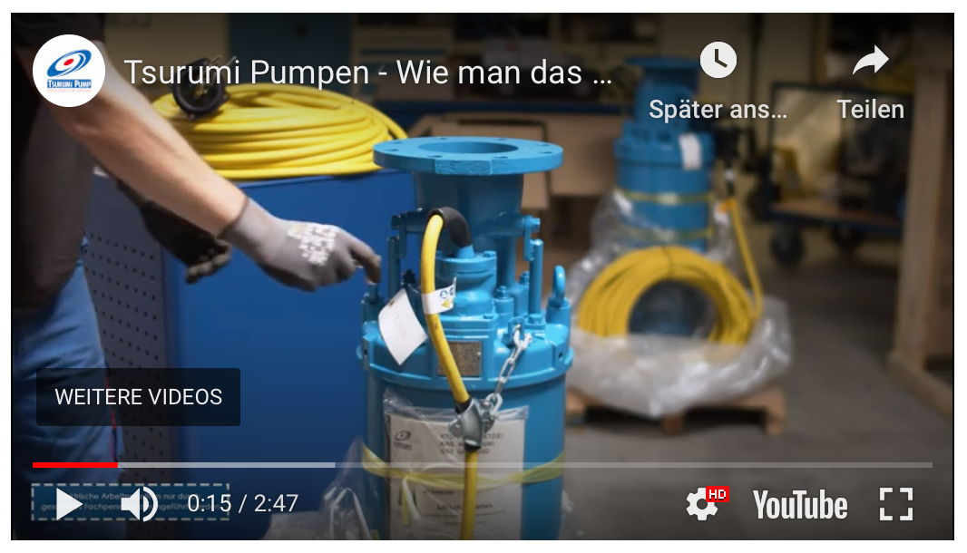 Tsurumi zeigt in professionellen Filmen, wie dabei vorzugehen ist. Manche Arbeiten sind im Nu erledigt, andere brauchen etwas länger. Die Laufzeit der Filme spiegelt dies wider. Von rund einer Minute bis über eine Stunde dauern die Vorführungen auf Deutsch und Englisch. Dabei ist zu bedenken: Tsurumi zeigt haarklein, welche Arbeitsschritte mit welchem Werkzeug durchzuführen sind. Vorkenntnisse sind nicht erforderlich, die Didaktik ist vorbildlich. Die neue Videothek ist daher ein Muss für Betriebsleiter und Anwender. Sie ergänzt die Betriebsanleitung der gelieferten Pumpe mit zeitgemäßen Mitteln. Zahlreiche weitere Videos sind bereits in Planung.